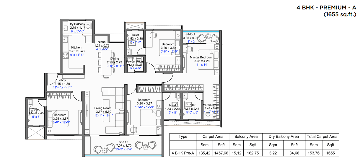 Updated on March 9, 2025 at 9:02 pm- Carpet Area 1655+ Sq.ft.